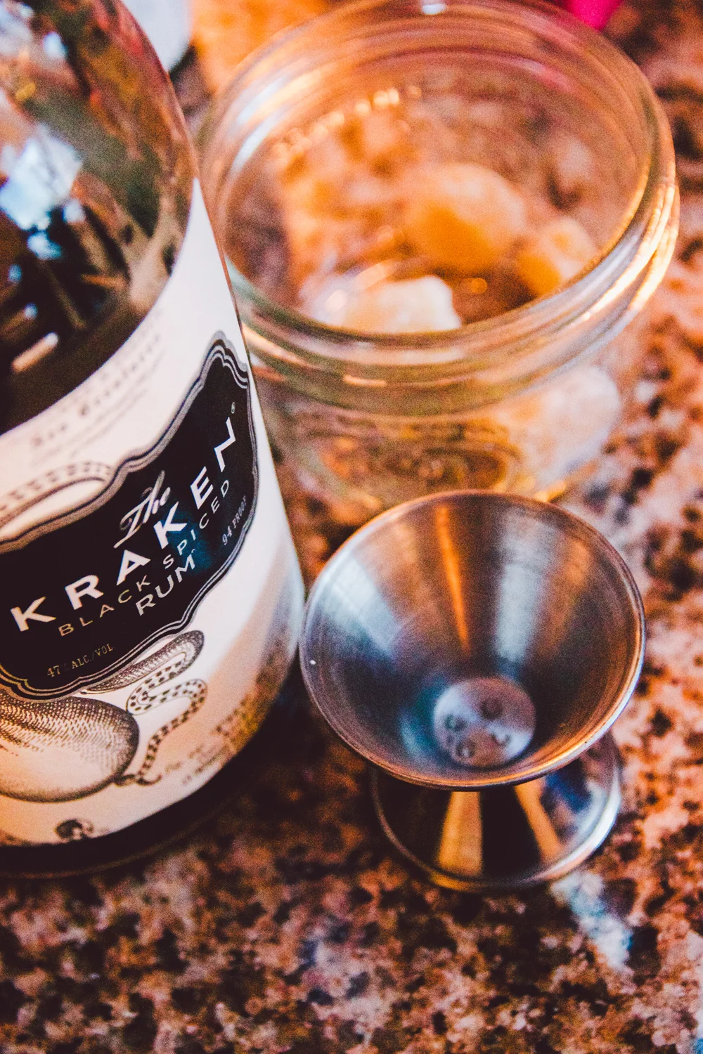 Personally, i think kraken spiced rum is the absolute best rum to use (no i'm not getting paid to say slowly pour the spiced rum over the back of a spoon.